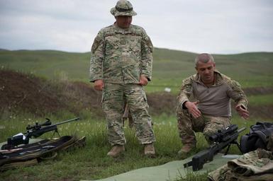 | Keywords: noble partner noblepartner outdoor A Georgian soldier explains the weaponry of a Georgian sniper rifle to U.S. and Georgian soldiers, May 22, during Exercise Noble Partner 16. The day consisted of the partner nations working together at the range to enhance battlefield interoperability of each other’s weapon systems, which include U.S. and Georgian mid-range rifles and the U.S. 240B machine gun. Exercise Noble Partner 16 is a Georgian and U.S. military training exercise taking place at Vaziani Training Area, Georgia, May 11 to 26, 2016. This exercise is a critical part of Georgia’s training for its contribution of a light infantry company to the NATO Response Force (NRF) and enhances Georgian territorial self-defense capability. (Photo by Sgt. Daniel Cole, U.S. Army Europe Public Affairs) A Georgian soldier explains the weaponry of a Georgian sniper rifle to U.S. and Georgian soldiers, May 22, during Exercise Noble Partner 16. The day consisted of the partner nations working together at the range to enhance battlefield interoperability of each other’s weapon systems, which include U.S. and Georgian mid-range rifles and the U.S. 240B machine gun. Exercise Noble Partner 16 is a Georgian and U.S. military training exercise taking place at Vaziani Training Area, Georgia, May 11 to 26, 2016. This exercise is a critical part of Georgia’s training for its contribution of a light infantry company to the NATO Response Force (NRF) and enhances Georgian territorial self-defense capability. (Photo by Sgt. Daniel Cole, U.S. Army Europe Public Affairs) |
