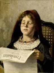 | Keywords: Georgios Jakobides Girl reading c1882.jpg Artwork creator Georgios Jakobides en Girl reading 1882 oil canvas cm 53 40 accession number object history Private collection Athens exhibition history Munich Exhibition of Artists Club 1882 credit line G JAKOBIDES upper left signature http //www bonhams com/auctions/15904/lot/22/ Bonhams London 20 May 2008 lot 22 PD-old-auto-1923 1932 DEFAULTSORT Georgios Jakobides; Girl reading; Bonhams 2008 Images from Bonhams Georgios Jakobides Paintings of girls Temporary for Cat-a-lot - Female humans Interest emotion Sitting Eyelids Necklines in art Child development Kerchiefs in art People with neutral background Faces of Girls in art Girls in art in three-quarter views Girls hands Females looking down in art Females in rooms in art Females with walls in art People and chairs 1882 paintings Newspapers in art Paintings of sitting girls reading indoors Females with glasses in art |