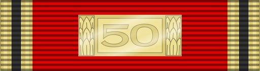 | Keywords: GER Bundesverdienstkreuz 2b BVK 50Jahre.svg en Ribbon bar Order of Merit of the Federal Republic of Germany “ Cross of Merit on Ribbon for Labour Jubilee; 1957-1966 pl Baretka Order ZasÅ‚ugi RFN “ Krzyż ZasÅ‚ugi na WstÄ™dze za Jubileusz Pracy; 1957-1966 de Bandschnalle Verdienstorden der Bundesrepublik Deutschland “ Verdienstkreuz am Bande für Arbeitsjubilare; 1957-1966 http //ordensmuseum de/bundesverdienstorden/miniaturen-zum-bundesverdienstorden/miniaturen-zum-verdienstkreuz-am-bande-fur-arbeitsjubilare/ Verdienstkreuz am Bande für Arbeitsjubilare from http //www ordensmuseum de/bvo/index htm ordensmuseum de own Mboro 2010-01-12 Ribbon bars of Germany Order of Merit of the Federal Republic of Germany PD-GermanGov |
