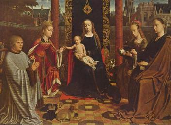 | Keywords: Gerard David 003.jpg File Gerard David - The Virgin and Child with Saints and Donor - Google Art Project jpg The Virgin and Child with Saints and Donor oil wood cm 104 144 Institution National Gallery London Yorck 1505-1510 creator Gerard David http //mail wikipedia org/pipermail/wikide-l/2005-April/012195 html Other versions PD-old-100 PD-Art-YorckProject Paintings of Madonna and Child by Gerard David Early Netherlandish paintings in the National Gallery Mystic marriage of Saint Catherine of Alexandria Paintings of Madonna and Child in the United Kingdom 16th-century greyhounds in art Saints with greyhounds in art 16th-century oil on panel paintings in the United States 16th-century religious paintings in the United Kingdom 1500s paintings in the United Kingdom 16th-century donor portraits with Madonna Virgin Mary with dog 1510s religious paintings |