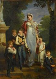 | Keywords: Gérard - Louise-Antoinette Lannes, née Guéheneuc, duchesse de Montebello et ses cinq enfants (1772-1856).jpg Artwork Creator François Gérard réduction d'un original de 1817 dans la collection Sabran-Pontèves 1818 Oil on canvas cm 33 24 Institution Versailles 000PE008257 other versions <gallery>La Maréchale Lannes et ses cinq enfants jpg Private collection</gallery> PD-old-100 Madame la Maréchale Lannes Duchesse de Montebello with Her Children Gérard Marguerite Gérard 19th-century portrait paintings in the Musée national du Château de Versailles 1817 Copies of portrait paintings PD-old files by User Jimmy from fr wikipedia |