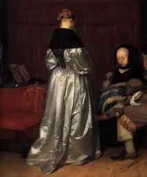 | Keywords: Gerard ter Borch (II) - Paternal Admonition (detail) - WGA22112.jpg Artwork Creator Gerard ter Borch II LangSwitch Gallant Conversation; known as ˜The Paternal Admonition ™ Conversation galante « La Remontrance paternelle » Galante conversatie; bekend als ˜De vaderlijke vermaning ™ ca 1654 Oil on canvas Institution Rijksmuseum object history credit line accession number WGA link 22112 http //www wga hu/art/t/terborch/1/bp_advid jpg http //www wga hu/html/t/terborch/1/bp_advid html Gerard ter Borch - Interieur met drie figuren die met elkaar in gesprek zijn; bekend als 'De vaderlijke vermaning' - Google Art Project jpg Full image PD-old-100 painting genre Dutch 1651-1700 Paintings by Gerard ter Borch II 1654 Detail Paintings by Gerard ter Borch II in the Rijksmuseum Amsterdam 1654 Detail 1650s paintings in the Netherlands WGA form painting WGA type genre WGA School Dutch WGA time period 1651-1700 Details of paintings without complete work |