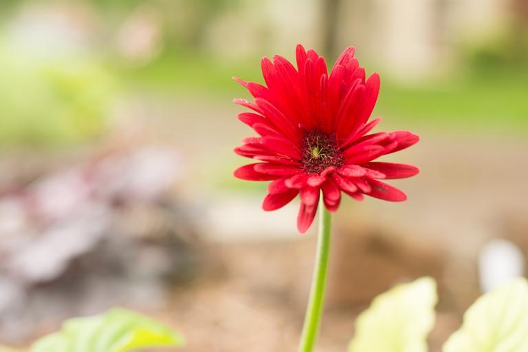 Keywords: gerber daisy green bug shelter rain blossom spring plant bloom floral flower nature colorful petal bright blooming red