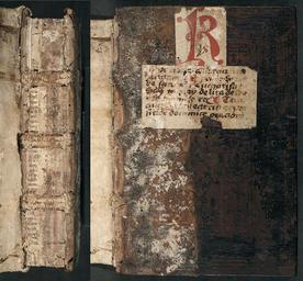 | Keywords: bookbinding historic antique book binding stonework architecture text outdoor column In the 15th century earlier manuscripts thought to be no longer useful were often cut up and re-used in the binding process. Here part of an earlier manuscript strengthens the spine. The pigskin, which covers the spine and comes partly over the dark leather covers, is a later addition. The volume originally fastened with a single clasp at the fore-edge and two holes can be seen where the catchplate for the clasp was attached, with the remains of a strap on the lower cover. The holes in the centre and towards the corners of both covers provide evidence of bosses (raised metal studs), which originally served to protect the book from dirt and rubbing. Purchased by the Alexander Turnbull Library in 1948 from Francis Edwards, London. Upper cover and spine of Joannes Baptista Gratia Dei, De confutatione hebraicae sectae (Strassburg: Martin Flach (Printer of Strassburg), 20 Sept. 1500). RInc GRATIA De 1500. In the 15th century earlier manuscripts thought to be no longer useful were often cut up and re-used in the binding process. Here part of an earlier manuscript strengthens the spine. The pigskin, which covers the spine and comes partly over the dark leather covers, is a later addition. The volume originally fastened with a single clasp at the fore-edge and two holes can be seen where the catchplate for the clasp was attached, with the remains of a strap on the lower cover. The holes in the centre and towards the corners of both covers provide evidence of bosses (raised metal studs), which originally served to protect the book from dirt and rubbing. Purchased by the Alexander Turnbull Library in 1948 from Francis Edwards, London. Upper cover and spine of Joannes Baptista Gratia Dei, De confutatione hebraicae sectae (Strassburg: Martin Flach (Printer of Strassburg), 20 Sept. 1500). RInc GRATIA De 1500. |