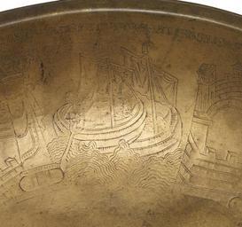 Keywords: German - Bowl with Scenes from the Legend of St Ursula - Walters 5369 - Detail G.jpg The narrative on this basin tells the story of Saint Ursula and her 11 000 companions who embarked on a pious journey from England to the Continent only to be met by the Huns in Cologne and slaughtered Ursula was warned of her impending doom according to the legend but willingly accepted martyrdom to join the kingdom of heaven The narrative is executed in a simple engaging manner The movement of Ursula and her companions is echoed in the narrative progression around the bowl as one turns it to follow the story The kinetic dimension of the display would likely have made this manner of recounting the saint's legend more memorable than simple recitation Indeed some scholars have suggested that bronze vessels of this type might have been used for teaching while others maintain that they might have played a role in liturgical hand-washing performed by nuns In the latter instance the swirling ocean crossed by Ursula must have looked quite realistic when seen through the rippling water that filled the bowl century 12 Medieval copper alloy cm 6 5 28 7 accession number 53 69 6988 Signol M E G Reidy Sale London July 19 1929 Bacri Paris Léon Gruel Paris Henry Walters Baltimore by purchase Walters Art Museum Henry Walters Acquired by Henry Walters Transcription Engraved on rim of bowl DESPONSANDA DAT HIS RESPONSIO BLANDA / VIRGINEO QUE GRAVES MITTIT PC AGMINE NAVES / POSTQUAM TURBA RUDIS FUIT HIS EXERCITA LUDIS CARBASA PANDUNTUR AGRIPPINA QUE FERUNTUR / QUE LOCA VIRGINEIS DISCUNT SACRANDA TROPHEIS / HINC VIA DIRGITUR QUA MOX BASILEA SUBITUR; Translation The betrothed gives a favorable answer / He sends great ships for the crowd of young women / After the uneducated crowd was practiced in these games the sails are raised bearing them to Agippina Cologne / This place they teach is made sacred through the triumph of the virgins / from here they took the direct way to Basel; Transcription Engraved in the border around the central medalion URSULA SOLLICITE SACRA DISCIT DOGMATA VITAE; Translation Ursula eagerly teaches the holy dogma of life place of origin Germany Walters Art Museum license Medieval metalwork in the Walters Art Museum Bowl with Scenes from the Legend of St Ursula in the Walters Art Museum 53 69 Media contributed by the Walters Art Museum needs category review