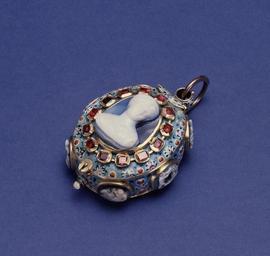 | Keywords: German - Enameled Watch with Cameos - Walters 58120 - Closed.jpg Although the earliest enamel watches came from Blois France the German city of Augsburg had long been a center of clock and watch making This is one of the earliest examples of a painted-enamel watch made in Germany It is set with eight cameos and thirteen rubies The agate cameos are contemporary not antique gems but they still advertise the patron's sophisticated taste for the antique style The inside covers depict landscapes with ancient ruins and pastoral scenes reflecting another aspect of the classicizing taste of the time between 1640 1650 gilded brass paint on enamel rubies and agate case gold and paint on enamel dial brass movement cm 5 3 5 accession number 58 120 18059 Henry Walters Baltimore date and mode of acquisition unknown Walters Art Museum Henry Walters Acquired by Henry Walters Signature Johann Ferdinand Mehrer World of Wonder The Walters Art Gallery Baltimore 1971-1972 place of origin Augsburg Germany Walters Art Museum license Baroque art in the Walters Art Museum German art in the Walters Art Museum Fob watches 17th-century watches Media contributed by the Walters Art Museum needs artist review Painted enamel art in the Walters Art Museum |