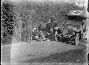 | Keywords: blackandwhite monochrome outdoor black and white German prisoners burying a dead horse behind New Zealand lines in France. At right is an ambulance. Photograph taken 1918 by Henry Armytage Sanders. Inscriptions: Inscribed - Photographer's title on negative -bottom right: H1241. Quantity: 1 b&w original negative(s). Physical Description: Dry plate glass negative 4.75 x 6.5 inches German prisoners burying a horse, France. Royal New Zealand Returned and Services' Association :New Zealand official negatives, World War 1914-1918. Ref: 1/2-013788-G. Alexander Turnbull Library, Wellington, New Zealand. natlib.govt.nz/records/23120948 German prisoners burying a dead horse behind New Zealand lines in France. At right is an ambulance. Photograph taken 1918 by Henry Armytage Sanders. Inscriptions: Inscribed - Photographer's title on negative -bottom right: H1241. Quantity: 1 b&w original negative(s). Physical Description: Dry plate glass negative 4.75 x 6.5 inches German prisoners burying a horse, France. Royal New Zealand Returned and Services' Association :New Zealand official negatives, World War 1914-1918. Ref: 1/2-013788-G. Alexander Turnbull Library, Wellington, New Zealand. natlib.govt.nz/records/23120948 |