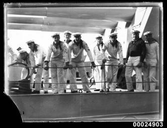 | Keywords: koln german cruiser germancruiser german naval visit navalvisit navy naval sydney harbour sydneyharbour samuel j hood collection samueljhoodcollection sydney cove sydneycove circular quay circularquay west circular quay westcircularquay crowds german navy germannavy sailors blackandwhite monochrome photo border black and white This photo is part of the Australian National Maritime Museum’s Samuel J. Hood Studio collection. Sam Hood (1872-1953) was a Sydney photographer with a passion for ships. His 60-year career spanned the romantic age of sail and two world wars. The photos in the collection were taken mainly in Sydney and Newcastle during the first half of the 20th century. The ANMM undertakes research and accepts public comments that enhance the information we hold about images in our collection. This record has been updated accordingly. Photographer: Samuel J. Hood Studio Collection Object no. 00024903 This photo is part of the Australian National Maritime Museum’s Samuel J. Hood Studio collection. Sam Hood (1872-1953) was a Sydney photographer with a passion for ships. His 60-year career spanned the romantic age of sail and two world wars. The photos in the collection were taken mainly in Sydney and Newcastle during the first half of the 20th century. The ANMM undertakes research and accepts public comments that enhance the information we hold about images in our collection. This record has been updated accordingly. Photographer: Samuel J. Hood Studio Collection Object no. 00024903 |