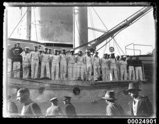 | Keywords: koln german cruiser germancruiser german naval visit navalvisit navy naval sydney harbour sydneyharbour samuel j hood collection samueljhoodcollection sydney cove sydneycove circular quay circularquay west circular quay westcircularquay crowds german navy germannavy sailors blackandwhite monochrome photo border text black and white This photo is part of the Australian National Maritime Museum’s Samuel J. Hood Studio collection. Sam Hood (1872-1953) was a Sydney photographer with a passion for ships. His 60-year career spanned the romantic age of sail and two world wars. The photos in the collection were taken mainly in Sydney and Newcastle during the first half of the 20th century. The ANMM undertakes research and accepts public comments that enhance the information we hold about images in our collection. This record has been updated accordingly. Photographer: Samuel J. Hood Studio Collection Object no. 00024901 This photo is part of the Australian National Maritime Museum’s Samuel J. Hood Studio collection. Sam Hood (1872-1953) was a Sydney photographer with a passion for ships. His 60-year career spanned the romantic age of sail and two world wars. The photos in the collection were taken mainly in Sydney and Newcastle during the first half of the 20th century. The ANMM undertakes research and accepts public comments that enhance the information we hold about images in our collection. This record has been updated accordingly. Photographer: Samuel J. Hood Studio Collection Object no. 00024901 |