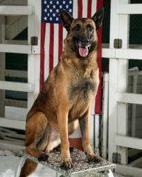 Keywords: german shepherd dog military canine portrait working dog sitting american flag looking attentive trained obedient alert