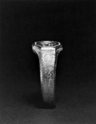 | Keywords: German - Signet Ring - Walters 572050.jpg Signet rings were used for impressing one's personal mark like a signature on the wax seal applied to a letter or other document The signet on this ring depicts a shield with a rampant lion with a flute in its mouth Above the shield are the initials S K The sides of the ring are engraved with images of a man and a woman probably husband and wife in late medieval secular dress ca 1500 Early Modern gold cm 1 2 2 5 2 6 accession number 57 2050 28581 Melvin Gutman Collection Sale Parke-Bernet Galleries New York May 15 1970 Part V lot 121 Mrs Ruth Blumka New York date and mode of acquisition unknown Walters Art Museum 1979 by purchase Museum purchase 1979 Transcription S K Jewelry - Ancient to Modern The Walters Art Gallery Baltimore 1979-1980 Recent Accessions The Walters Art Gallery Baltimore 1981 Objects of Adornment Five Thousand Years of Jewelry from the Walters Art Gallery Baltimore Cooper-Hewitt National Design Museum New York; Chrysler Museum of Art Norfolk; Carnegie Museum of Art Pittsburgh; San Antonio Museum of Art San Antonio; Philbrook Museum of Art Tulsa; Honolulu Academy of Arts Honolulu; New Orleans Museum of Art New Orleans; Milwaukee Art Museum Milwaukee; Minneapolis Institute of Arts Minneapolis; Toledo Museum of Art Toledo; The John and Mable Ringling Museum of Art Sarasota 1984-1987 Jewelry from the Walters Art Museum and the Zucker Family Collection The Walters Art Gallery Baltimore 1987 place of origin Germany Walters Art Museum license Signet rings Jewellery of Germany Renaissance jewellery Renaissance applied arts in the Walters Art Museum Jewellery in the Walters Art Museum German art in the Walters Art Museum |