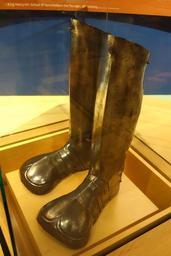 | Keywords: German Tudor sabatons and greaves, possibly worn by a Lanzichenecchi official, 16th century - Bata Shoe Museum - DSC00108.JPG en Exhibit in the Bata Shoe Museum Toronto Ontario Canada This item is old enough so that its design is in the public domain The museum permitted photography without restriction 2013-07-04 10 20 09 own Daderot cc-zero Shoes in the Bata Shoe Museum Uploaded with UploadWizard Sabatons | ||||