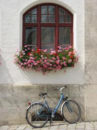 Keywords: germany bicycle window bike germany street exterior bicycles bavaria windowbox flowers red flower