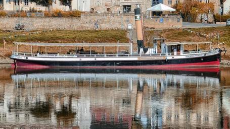 Keywords: germany boat ship river water reflections fall autumn sightseeing hdr