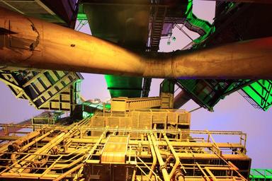Keywords: germany duisburg landschaftspark steel plant industrial industry evening illuminated