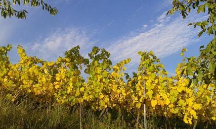 Keywords: germany sachsen rheinhessen osthofen vines autumn leaves sky blue sun yellow