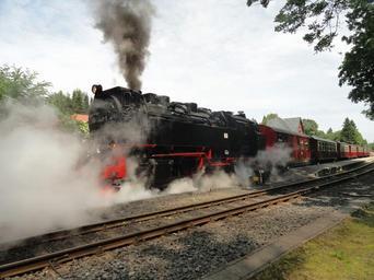 Keywords: germany train railroad railway track tracks locomotive transportation steam smoke trees outside