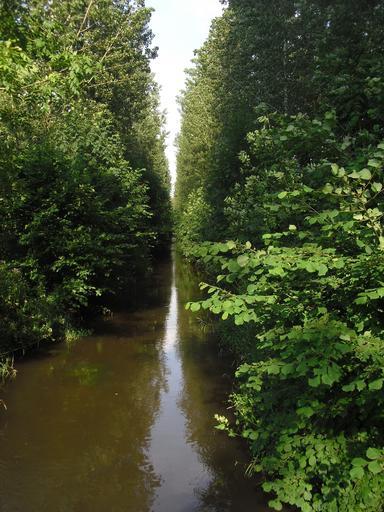Keywords: germany waterway canal water reflection reflections trees forest woods nature outside sky light beam sunlight country countryside summer spring