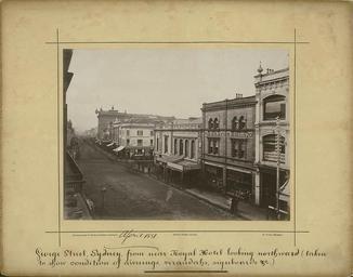 | Keywords: archives state records nsw staterecordsnsw newsouthwales blackandwhite sydney royal exchange hotel royalexchangehotel george 1881 gpo excelsior photo company goode bernard goode bernardgoode photo border black and white Title: Geroge Street, Sydney, looking northward from the 'Royal Hotel' - showing condition of awnings, verandahs, signboards Dated: 01/04/1881 Digital ID: 745_a019_a019000010 Rights: www.records.nsw.gov.au/about-us/rights-and-permissions We'd love to hear from you if you use our photos/documents. Many other photos in our collection are available to view and browse on our website using Photo Investigator. Title: Geroge Street, Sydney, looking northward from the 'Royal Hotel' - showing condition of awnings, verandahs, signboards Dated: 01/04/1881 Digital ID: 745_a019_a019000010 Rights: www.records.nsw.gov.au/about-us/rights-and-permissions We'd love to hear from you if you use our photos/documents. Many other photos in our collection are available to view and browse on our website using Photo Investigator. |