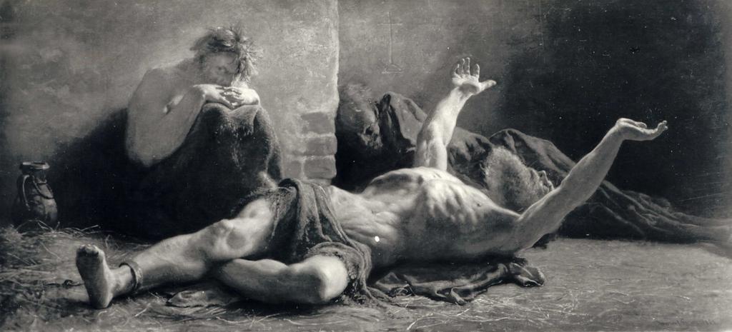 | Keywords: Gerson-Pozbawiony nadziei.jpg Devoid of Hope Without Hope Pozbawiony nadziei Bez nadziei Creator Wojciech Gerson 1883 oil canvas cm 68 151 Catalogue of paintings removed from Poland by the German occupation authorities during the years 1939-1945 Polish paintings / comp Władysław Tomkiewicz ; Ministry of Culture and Art Warsaw 1950 Editor Ministry of Culture and Art See also http //kolekcje mkidn gov pl/ Department of National Heritage Wartime losses an official webpage of Polish Ministry of Culture Art and National Heritage Lost during World War II Copyright expired PD-Art PD-old-100 Wojciech Gerson 19th-century Polish paintings lost in Poland during World War II Prisoners in art 1883 Gerson Wojciech Group paintings of males 1883 paintings Oil paintings Prison cells in art Black and white reproductions of paintings in color |