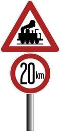 | Keywords: Geschwindigkeitsbeschränkung an Übergängen ohne Baken - Bundesbahn Zentralamt München.svg de Geschwindigkeitsbeschränkung an à bergängen ohne Baken Verkehrsschildanordnung des Bundesbahn Zentralamts München während der zweiten Hälfte der 1950er Jahre Nach einer historischen Abbildung Für den Rotton wurde damals das RAL-Farbtonregister 840 R gewählt Der dort verzeichnete Rotton RAL 3000 ist in der Abbildung wiedergegeben Zeichen dieser Art wurden bis zur StVO 1970 hergestellt Dann änderte sich der Rotton der Umrandung Verkehrszeichen nach den Vorgaben der StVO in der Fassung vom 29 März 1956 Verkehrsschildanordnung des Bundesbahn Zentralamts München während der zweiten Hälfte der 1950er Jahre Nach einer historischen Abbildung; gezeichnet und interpretiert durch Mediatus Mediatus 2013-10-04 other fields + Signs User Mediatus/no-new-version Cc-zero PD-Vz historisch Diagrams of road sign assemblies of Germany 1956 set SVG road signs in Germany Triangular warning road signs of Germany |