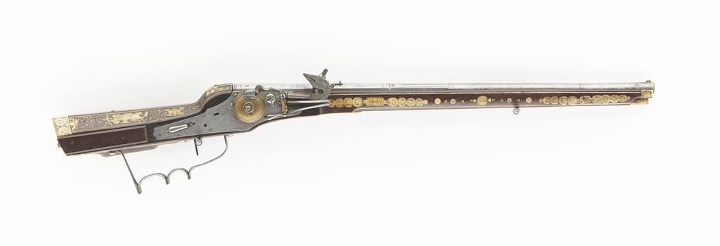| Keywords: Gevär - Livrustkammaren - 96552.tif LSH artwork Balthasar Johann Zellner bössmed Georg Zellner stockmakare Balthasar Dressler Drechsler Dreshler Drexler hovbössmed sv Rund slätborrad s k tornpipa med åttsidig kammare vid övergången på ovansidan ett 85 mm långt parti med filad spetsdekor och skålningar vid bakkanten Böjt tvärt avskuret svansskruvblad skålad siktränna från svansskruvblad till sikte På sidofaserna stämplar B D samt två sköldformiga stämplar med fåglar samt därbakom ornamentsstämplar Stöckel nr 255 Framför siktet graverad datering 1601 samt likadana ornamentstämplar som vid pipbasen På höger sidofas på kammarens undersida stämpel M C <br/>Riktmedel Inlaxade riktmedel ståndsikte samt stolpkorn av mässing <br/>Fästning Två häften pipan fäst med krysskruv underifrån främre varbygelskruven samt två pipstift av stål <br/>Hjullås med plant låsbleck av stål liten spets på bakänden på låsbleckets bakre del ett välvt studellöv samt urtag för virvelsäkring som nu saknas Utvändigt hjul täckt av välvd hjulkapsel av mässing med graverad rankdekor Fängpanna med låg rak krutskärm fängpannelock med rörlig arm tryckknapp med välvt huvud tvärgående streckdekor Kantig balusterformig hankropp plan hals med rund genombrytning kantiga käkar överkäken lö s kort grepp med liten volut käkskruv med fyrsidigt huvud Hanfjäder med fasade kanter droppformigt välvt fjäderlöv med liten björn <br/>Fästning Två låsskruvar <br/>Rak avtryckare med ställskruv i låsbleckets framkant avtryckarbleck av stål med spetsig framände <br/>Helstock av valnöt signerad G Z bakom svansskruven Kolv av tysk typ med vinge och kolvlåda Ej ursprungligt plant kolvlådelock med fasade kanter Delvis kompletterade beslag och inläggningar av ben med rullverksdekor Slät bakplåt utan stödkula ursprunglig ändbeslag på kolven med rullverksdekor plattan på kolvens högra sida utbytt På vingen platta med till stor del utplånad dekor bakre låsskruvbrickan ej ursprunglig På framstocken stora pipstiftsbrickor i form av ringar främre delen av det bakre samt hela det främre på vänster sida utbytta Över laddstocksrännans bakände en ej ursprunglig benplatta Näsband med dubbla kantlinjer På framstocken inbränt rustkammarmärke namnchiffer C A krönt av öppen krona Varbygel av stål med två fingerlägen <br/>Tillbehör <br/>Laddstock av trä l 611 mm framtill skodd med ben med dubbla graverade ringar original caption Gevär<br/> Nyckelord Hjullåsbössa 1601 walnut e3 - eldvapen - stock material valnöt - steel e127 - eldvapen - pipa lås och stockbeslag material stål - brass e24 - eldvapen - lås och riktmedel material mässing - bone e8 - eldvapen - stockdekor material ben g 2598 size mm 616 pipa size mm 874 LRK Töjhuset Arsenalen Köpenhamn arsenal Rendsborg-rustkammaren B D Stöckelnr 255 anv e1 - eldvapen - pipa; Balthasar Johann Zellner C A öppen krona brännmärke 1921 465 anv e3 - eldvapen - stock; Christian Albrecht av Holstein-Gottorp G Z stocksignering anv e3 - eldvapen - stock; Georg Zellner M C Stöckelnr 3889 anv e1 - eldvapen - pipa; anonym pipsmed B D Stöckelnr 255 anv e1 - eldvapen - pipa; Balthasar Johann Zellner C A öppen krona brännmärke 1921 465 anv e3 - eldvapen - stock; Christian Albrecht av Holstein-Gottorp G Z stocksignering anv e3 - eldvapen - stock; Georg Zellner M C Stöckelnr 3889 anv e1 - eldvapen - pipa; anonym pipsmed place of origin Dresden original filename lm_dig10102 50024 inventory number LRK 13437 96552 CC-BY-SA Erik Lernestål Wheellock musket images from Livrustkammaren Photographs of weapons by Erik Lernestål Media contributed by LSH dim-with multiple size templates Media contributed by LSH unmatched creator Media contributed by LSH 2014-11 |