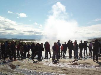Keywords: Tourists around Strokkur.JPG en just after the geyser has erupted 2014-08-09 17 35 30 own Ypsilon from Finland cc-zero Uploaded with UploadWizard Strokkur