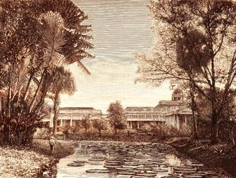 Keywords: Gezicht-op-het-paleis-van-d.jpg en Gezicht op het paleis van de gouverneur-generaal Eigen Haard nvt 1880 PD-old-100 Eigen Haard