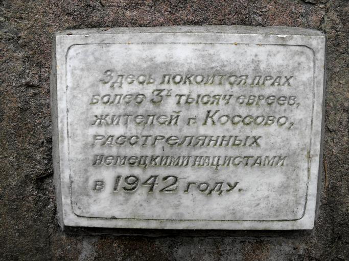 Keywords: Ghetto Kossovo 1d.jpg ru Памятник на месте убийства нацистами в 1942 году ев еев из гетто Косово около и во дво це Пусловских кото ый асположен в у очище е ечёвщина о очовщина Установлен в 1992 году в 2007 п ик еплен госуда ственный знак Воинское захо онение 4724 Разме захо онения 15х15 мет ов Люди были убиты возле дво ца и внут и дво ца Тела видимо были пе енесены или пе евезены на го одище асположенное вблизи дво ца либо убийства п оходили и там а место убийства указывает табличка у подножия го одища Памятник находится на ве шине го одища на месте б атской могилы 2012-09-24 14 38 22 own Avner cc-zero Ghetto Kosava Uploaded with UploadWizard |