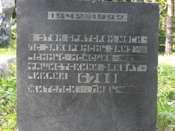 | Keywords: Ghetto Lida a04.jpg ru Памятная доска с надписью на усском языке у мемо иала на месте убийства нацистами и их пособниками 6700 ев еев Лиды аходится в 150 мет ах от кольцевой до оги Лиды на п одолжении улицы К асноа мейская сп ава от неё в лесу ядом с мемо иалом Детская могила 2011-08-25 own Vadim Akopyan 53 891056 25 250486 cc-zero Uploaded_with_UploadWizard Ghetto Lida |