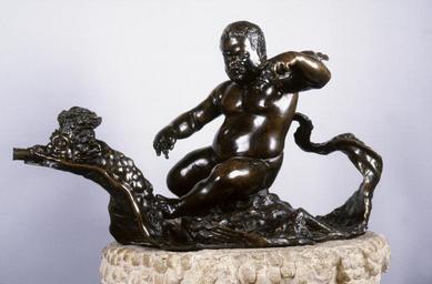 | Keywords: Giambologna - The Dwarf Morgante Riding on a Dragon - Walters 54719.jpg The dwarf Morgante was Grand Duke of Tuscany Cosimo de' Medici's jester Dwarfs were commonly employed at courts where they were looked upon as marvels of nature and in the case of a jester were expected to entertain and amuse Here Morgante sits on a dragon that imitates one crafted by Cencio della Nera the duke's goldsmith The dwarf raises his hand to still the waters in a gesture that parodies representations of Neptune the Roman god of the ocean This fountain ornament is a copy of a bronze by Giovanni da Bologna installed between 1583 and 1585 in the garden terrace above the Loggia dei Lanzi in Florence century 18 bronze; contemporary marble fountain cm 29 57 7 accession number 54 719 33316 Henry Walters Baltimore date and mode of acquisition unknown Walters Art Museum Henry Walters Acquired by Henry Walters Art of Europe XVI-XVII Worcester Art Museum Worcester 1948 Fontinalia The Art of the Fountain and the Fountain in Art Spencer Museum of Art Lawrence 1957 place of origin Paris France Walters Art Museum license Nano Morgante Giambologna Media contributed by the Walters Art Museum needs category review Sculptures in the Walters Art Museum Media contributed by the Walters Art Museum needs artist update Dragon riding |