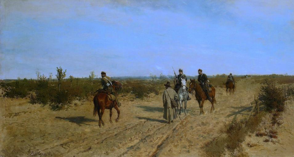| Keywords: Gierymski Insurgent patrol.png Artwork Q11813559 Creator Maksymilian Gierymski ~ 1873 Oil on canvas cm 60 108 Institution National Museum Warsaw 1 accession number MP 418 object history credit line M Gierymski signature bottom left ~ 223936 LangSwitch A patrol of the uprising army in Poland Een patrouille van het opstandig leger in Polen 1873 cm 59 5 107 Image taken by User Mathiasrex Maciej SzczepaĆczyk PD-old-100 DEFAULTSORT 1872; Insurgent patrol Paintings by Maksymilian Gierymski in the National Museum in Warsaw 1872 paintings Gierymski Maksymilian Paintings from Poland Gierymski Maksymilian Poland in history paintings Gierymski Maksymilian January Uprising in history paintings |