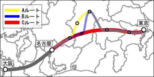 | Keywords: 中央リニア新幹線ルート.gif ja 中央リニア新幹線の想定ルート <br>Aルート: 曽谷ルート 京-相模原-甲 -諏訪- 曽福島-中津 -名古屋 <br>Bルート:伊那谷ルート 京-相模原-甲 -諏訪-飯田-中津 -名古屋 <br>Cルート:南アルプスルート 京-相模原-甲 -飯田-中津 -名古屋 http //www freemap jp/ で配布されている白 図に自身で描画 2009-06-21 笑 得す努す Public domain Railway maps of JR Central Shinkansen maps Chuo Chūō Shinkansen |