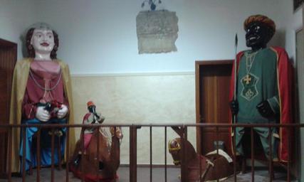 Keywords: Giganti di Seminara "Mata" e "Grifone".jpg it Foto dei Giganti di Seminara Mata e Grifone con cavallo e cammello esposti nel Palazzo Comunale di Seminara own Tizio02 2015-08-15