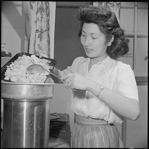 | Keywords: Gila River Relocation Center, Rivers, Arizona. Student Mary Sakai, former resident of Stockton, Cal . . . - NARA - 537060.tif Scope and content The full caption for this photograph reads Gila River Relocation Center Rivers Arizona Student Mary Sakai former resident of Stockton Califronia is shown putting sliced carrots in a double boiler in preparation for the drying process General notes 537060 Local identifier 210-G-B449 Department of the Interior War Relocation Authority 02/16/1944 - 06/30/1946 NARA-Author Stewart Francis War Relocation Authority photographer Photographer 8464475 <br /> Still Picture Records Section Special Media Archives Services Division NWCS-S National Archives at College Park 8601 Adelphi Road College Park MD 20740-6001 1943-04-25 Record group Record Group 210 Records of the War Relocation Authority 1941 - 1989 Record group ARC 537 Central Photographic File of the War Relocation Authority compiled 1942 - 1945 Series ARC 536000 File unit File unit ARC Variant control numbers NAIL Control Number NWDNS-210-G-B449 yes Other versions <gallery> File Gila_River_Relocation_Center _Rivers _Arizona _Student_Mary_Sakai _former_resident_of_Stockton _Cal_ _ _ _-_NARA_-_537060 tif tif File Gila_River_Relocation_Center _Rivers _Arizona _Student_Mary_Sakai _former_resident_of_Stockton _Cal_ _ _ _-_NARA_-_537060 jpg jpg </gallery> NARA-cooperation PD-USGov Gila River War Relocation Center NARA TIF images with categorized JPGs Sliced carrots |