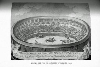 | Keywords: Giostra dei tori al mausoleo d'Augusto (1780).jpg it Roma 1780 giostra dei tori al mausoleo di Augusto detto il Corea Anonimo 2014-06-04 16 00 08 Pd-old - scanned book author PD-Art Uploaded with UploadWizard Mausoleo d'Augusto Rome 1780 Bullfighting in Italy |