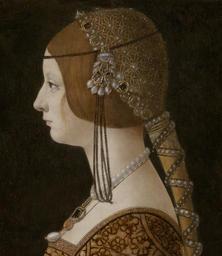 | Keywords: Giovanni Ambrogio de Predis - Blanca Maria Sforza (c. 1493, National Gallery of Art) crop.jpg Artwork Creator Ambrogio de Predis c 1493 Oil on panel Institution National Gallery of Art File Ambrogio de Predis - Bianca Maria Sforza - Google Art Project jpg crop page is was here <nowiki> 09 38 17 Jun 2006 Caro1409 380 x 537 41 778 Bytes <span class comment > Bianca Maria Sforza by Ambrogio de Predis um ca 1493 </span> </nowiki> DEFAULTSORT Predis Bianca Maria Sforza 1493 Giovanni Ambrogio de Predis Sforza Bianca Maria Italian Renaissance portrait paintings in the National Gallery of Art Predis Bianca Maria Sforza 02 1493 paintings in the United States Portrait 1493 portrait paintings F 15th-century oil on panel paintings in the United States 1493 15th-century oil portraits of women at half length 1493 15th-century portrait paintings in the National Gallery of Art 1493 15th-century profile portrait paintings of women 1493 Braids in art 1493 Female hair fashion in art 1493 Females with hair with pearl jewellery in art 1493 Females with pearl necklaces in art 1493 Portrait paintings of women of Italy Renaissance profile portraits of women Ambrogio Women facing left in art Women with jewellery in art |