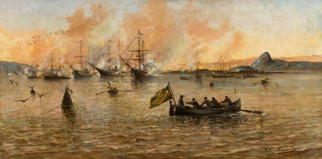 | Keywords: Giovanni Battista Castagneto - Uma salva em dia de grande gala na baía do Rio de Janeiro.JPG signature lower right Creator Giovanni Battista Castagneto title Vessels Firing a Salvo in a Day of Great Pomp in Rio de Janeiro Bay Uma Salva em Dia de Grande Gala na Baía do Rio de Janeiro 1887 Oil on canvas cm 74 150 Museu de Arte de São Paulo São Paulo Brazil http //www masp art br/masp2010/acervo_detalheobra php id 366 PD-old-100 Other versions 1887 paintings 1880s paintings from Brazil 1887 Giovanni Battista Castagneto Brazilian paintings in the Museu de Arte de São Paulo Oil paintings of seascapes History of Brazil 1840-1889 Pedro II Reign Paintings of Rio de Janeiro city Paintings of seascapes with sunset |