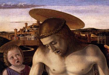 | Keywords: Giovanni bellini, pietà del museo correr 02.jpg Artwork Creator Giovanni Bellini Dead Christ Supported by Two Angels other date ca 1460 Tempera on panel Institution Museo Correr Venice object history credit line accession number WGA link 1630 http //www wga hu/art/b/bellini/giovanni/1459/021pietd jpg http //www wga hu/html/b/bellini/giovanni/1459/021pietd html PD-old-100 painting religious Italian 1451-1500 WGA form painting WGA type religious WGA School Italian WGA time period 1451-1500 Pietas by Giovanni Bellini Museo Correr Venice 15th-century paintings of the Pietà |