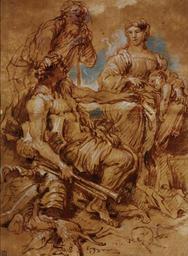 | Keywords: Giovanni Benedetto Castiglione - Allegory in Honour of the Ruling Couple of Mantua - Google Art Project.jpg brush with brown and black ink red-brown light blue and white oil paint on yellow prepared paper Esterházy Collection acquired in 1870 special url_id hgEfrRwHT_R8jQ PD-old-100-1923 1664 Giovanni Benedetto Castiglione Google Art Project works by Giovanni Benedetto Castiglione Italian paintings in the Museum of Fine Arts Budapest | ||||
