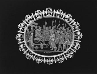 | Keywords: Giovanni Bernardi - Plaque with Christ before Pilate - Walters 41240.jpg This work may be from a set of engraved rock crystal plaques depicting the life of Christ that according to the writer Giorgio Vasari Giovanni Bernardi completed in 1547 for Cardinal Alessandro Farnese 1520-89 They were probably intended to be set into a casket by another craftsman Bernardi was one of the most famous rock crystal engravers of the Renaissance This plaque-with its closely packed relief-like arrangement oval shape and tightly drawn figures-points to his familiarity with Roman intaglio carving on gems The artist signed the plaque with his first name in Latin and F short for fecit made this ca 1547 Renaissance rock crystal gold frame with enamel pearls and rubies cm 10 12 accession number 41 240 23974 Cook date and mode of acquisition unknown Cook Sale July 1925 no 469 Sadie Jones Mrs Henry Walters New York date and mode of acquisition unknown Mrs Henry Walters Sale New York December 4 1943 no 996 Walters Art Museum 1943 by purchase Museum purchase with funds provided by the S and A P Fund 1943 Translation Giovanni F The Taste of Maryland Art Collecting in Maryland 1800-1934 The Walters Art Gallery Baltimore 1984 place of origin Rome Italy Walters Art Museum license Renaissance applied arts in the Walters Art Museum Giovanni Bernardi Rock crystal objects Media contributed by the Walters Art Museum needs category review Christ before Pilate |
