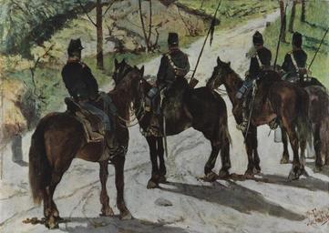 | Keywords: Giovanni Fattori – Cavalleggeri in avanscoperta.tiff Artwork Creator Giovanni Fattori Cavalleggeri in avanscoperta 1855 oil canvas Size cm 39 27 5 LangSwitch Cavalrymen on reconnaissance print reproduction Cavalleggeri in avanscoperta riproduzione tipografica LangSwitch Photographed by the Museum of Modern and Contemporary Art of Trento and Rovereto uploaded by User Mushroom Opera fotografata dal Museo d'arte moderna e contemporanea di Trento e Rovereto caricata da User Mushroom PD-old-auto-1923 1924 Mart Military paintings of Giovanni Fattori Cavalry of Italy 19th-century cavalry Reconnaissance |