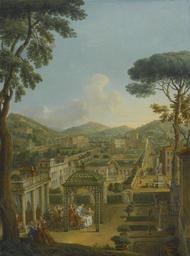 | Keywords: GIOVANNI PAOLO PANINI PIACENZA 1691 - 1765 ROME AN EXTENSIVE LANDSCAPE WITH VILLAS AND FIGURES.jpg title An Extensive Landscape with Villas and Figures including the Artist himself dining beneath a Pergola in the Foreground oil on canvas cm 130 97 http //www sothebys com/en/auctions/ecatalogue/2013/old-master-paintings-n08952/lot 81 html 2013-01-26 14 04 58 creator Giovanni Paolo Panini PD-old-100 Uploaded with UploadWizard Giovanni Paolo Pannini Images from Sotheby's | ||||