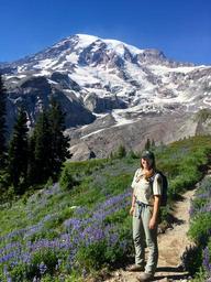 | Keywords: national park service nationalparkservice interns youth programs youthprograms gip geoscientists-in-the-parks geoscientistsintheparks landscape outdoor mountain hill mountainside ridge grassland field mountain ridge Megan Thompson-Munson at Mount Rainier National Park, Washington. NPS photo Megan Thompson-Munson at Mount Rainier National Park, Washington. NPS photo |