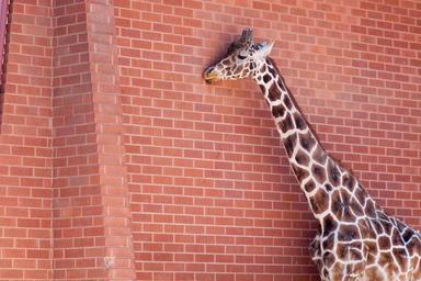 Keywords: giraffe brick wall animal zoo nature mammal brick work