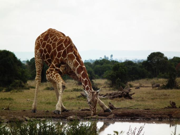 Keywords: giraffe kenya africa wildlife safari wild waterhole drinking water nature animal reserve conservation habitat