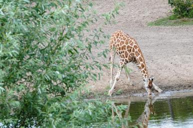 Keywords: giraffe watering hole animal safari drink africa mammal