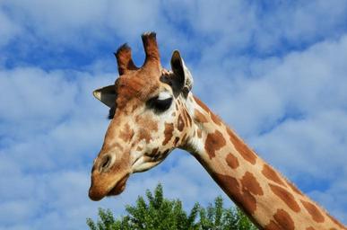 Keywords: giraffe zoo catwalk animal wild animal the head of the giraffe head sky africa