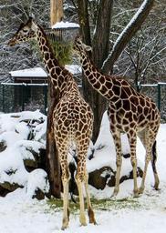 Keywords: giraffes tiergarten winter zoo reticulated giraffe snow