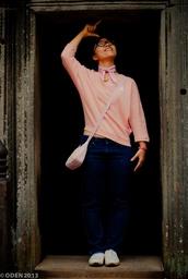 Keywords: girl asian temple angkor wat tourist tall nice door young happy face smiling student pink